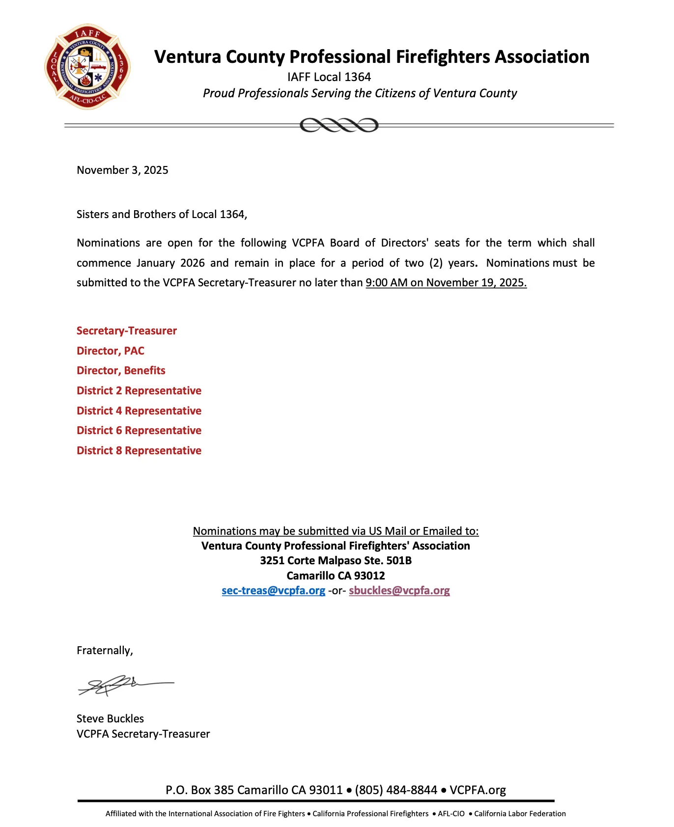 The Ventura County Professional Firefighters’ Association (VCPFA), International Association of Fire Fighters (IAFF) Local 1364, is a united force of full-time, professional firefighters and fire prevention officers dedicated to serving the Ventura County Fire Department.